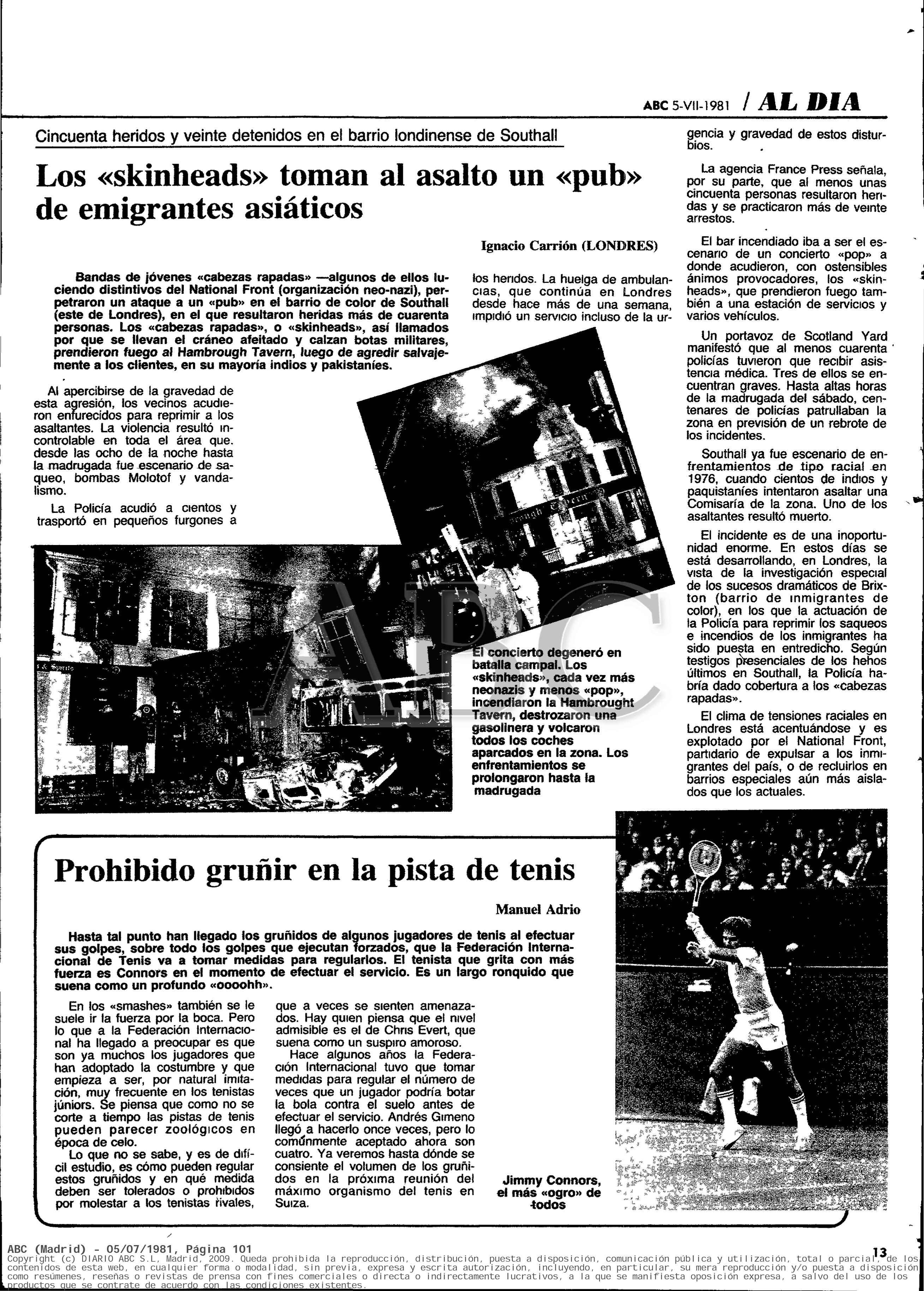 Información sobre los sucesos de Southall en 1981 publicada por ABC el 5 de julio de 1981