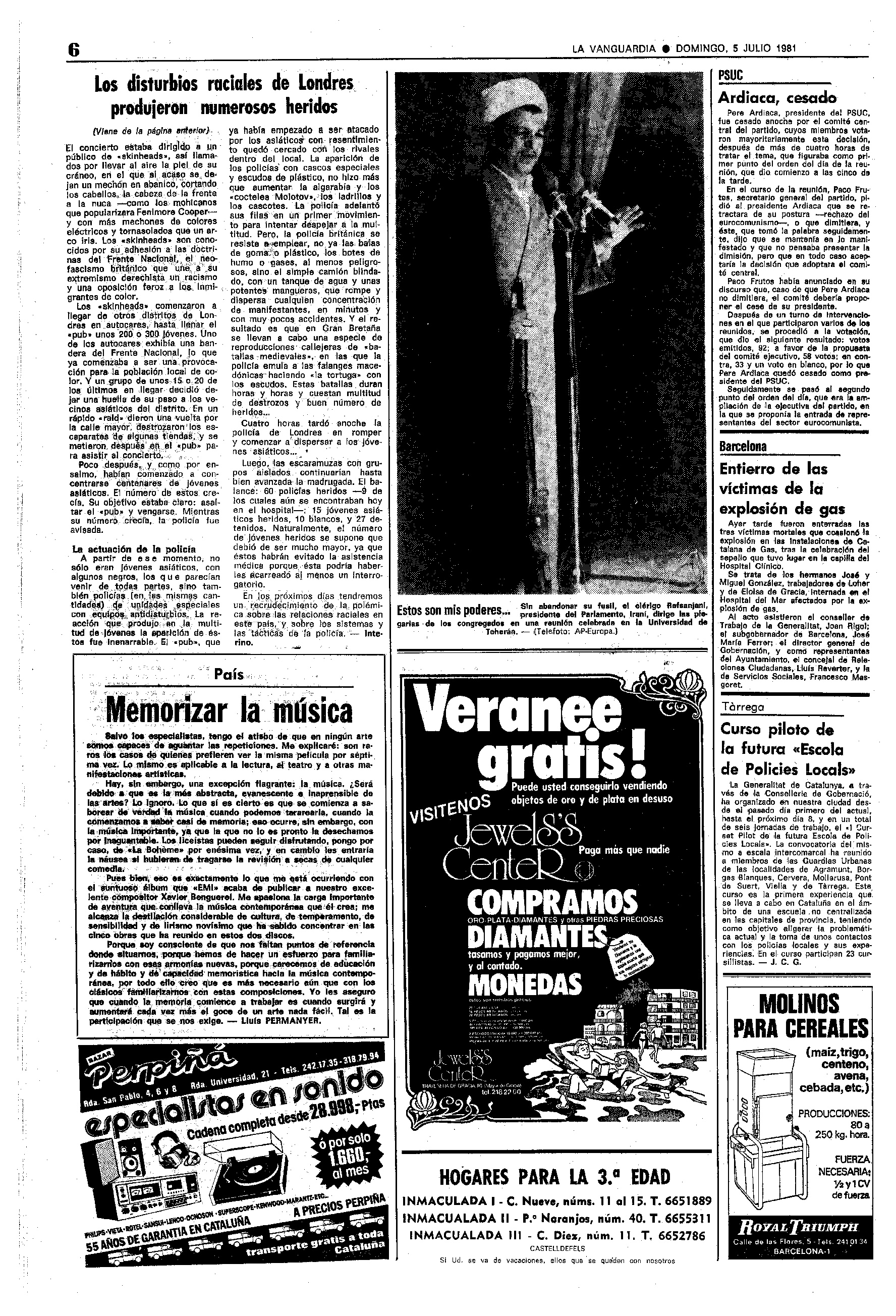 Información interior de La Vanguardia del domingo, 5 de julio de 1981, con los sucesos en Southall