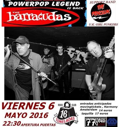 En mayo tenemos a los míticos The Barracudas de nuevo en nuestro país. Según las informaciones de las que disponemos, el grupo británico estará actuando en la sala 16 Toneladas de Valencia el próximo día 6 de mayo. Y no … Continúa leyendo Concierto de The Barracudas en Valencia